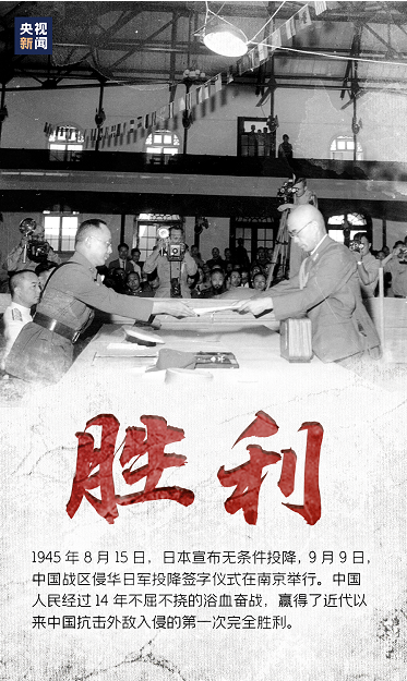 77年前的今天,日本宣布无条件投降,中国人民经过14年不屈不挠的浴血奋战,终于赢得了近代以来中国抗击外敌入侵的第一次完全胜利。如今,硝烟早已散去,伟大的抗战精神却永远激励我们奋勇向前。