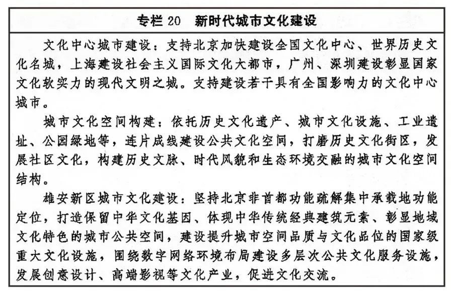 综合城市功能定位和经济社会发展,建设传统文化和现代文化交相辉映、城市气质与人文精神相得益彰的现代城市文化。强化各类规划中文化建设的刚性约束,保护历史文化遗产,融合时代文明,构建城市文化精神,发展城市主题文化,营造特色文化景观。以文化建设带动城市建设,提升城市文化品位、整体形象和发展品质。加快建设一批有全国影响力的文化中心城市、特色文化强市。支持相关省(自治区、直辖市)建设一批具有代表性的区域文化中心城市和特色文化城市。结合新型城镇化建设,鼓励因地制宜发展一批承载历史记忆、体现地域特征、富有民族特色的美丽城镇。