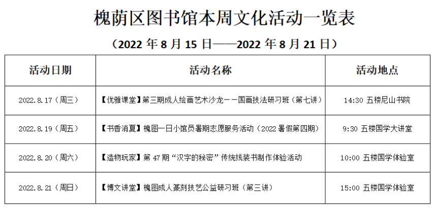 活动预告|槐图本周活动上新啦!(8月15日-8月21日)