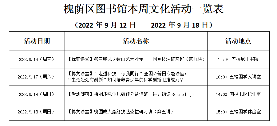 活动预告|槐图本周活动上新啦! (9月12日-9月18日)
