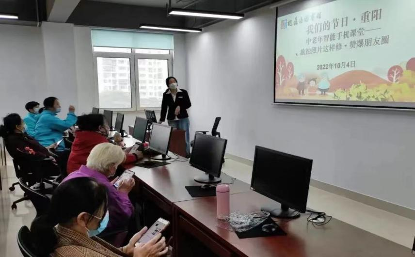 “赋启芯智,桑榆未晚”,为庆祝中国传统节日“重阳节”,弘扬尊老敬老、爱老助老优良传统,10月4日,槐荫区图书馆(槐荫区新时代文明实践中心)开展中老年智能手机课堂活动,现场共有十余位中老年读者到场参与。