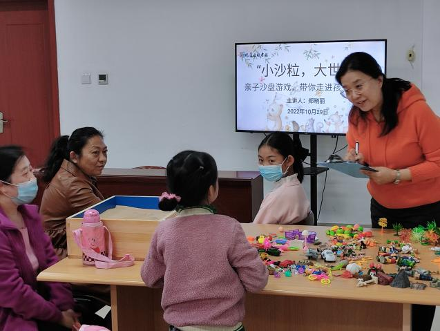 本次活动由国家二级心理咨询师郑晓丽老师主持开展,郑老师具有丰富的心理咨询实践经验。此次的沙盘活动是以亲子形式开展,郑晓丽老师从积极的品质出发,引导家长发现孩子们的优秀一面,用关爱和尊重的态度陪伴孩子们的成长。