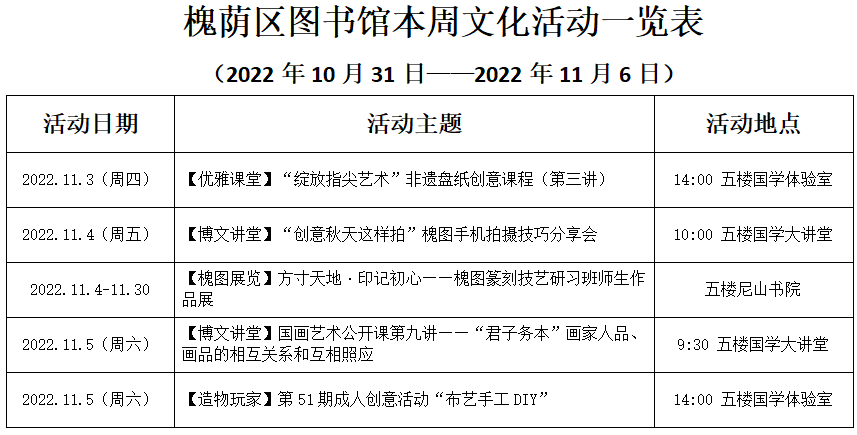 活动预告|槐图本周活动上新啦! (10月31日-11月6日)
