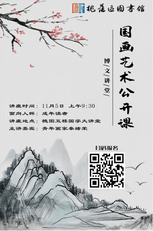 活动简介:槐荫区图书馆(槐荫区新时代文明实践中心)为了弘扬中华民族传统文化,丰富广大读者的精神文化生活,为大众提供多元化的文化活动,特邀请秦绪荣老师来馆开展国画艺术公开课活动,本次课程包含讲解和现场实践,欢迎广大读者前来参与。