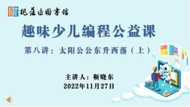 疫情不停学,宅家也精彩。为带动广大青少年读者线上学习期间良好的学习氛围,培养少年儿童的创新思维能力,槐荫区图书馆(槐荫区新时代文明实践中心)2022年11月27日开展了槐图趣味少儿编程公益课第八讲线上讲座活动。