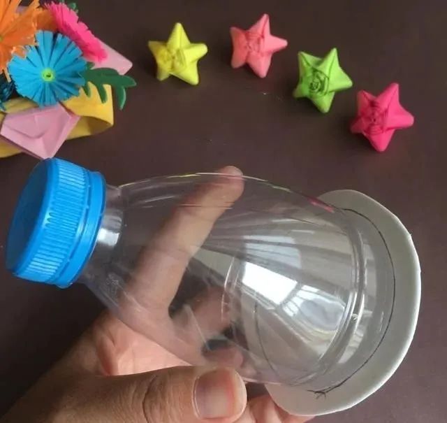 1、将矿泉水瓶用剪刀剪开,剪开的位置建议在瓶身的第一圈圆环下,然后把瓶子放在纸壳上,画出一个圆形,剪的时候这个圆形要比画的圆大一些;
