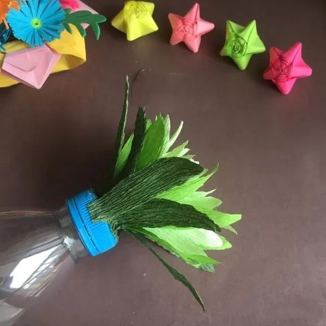 7、底部叶子用了2种颜色,粘完之后将叶子稍微向外卷曲呈现散开状。