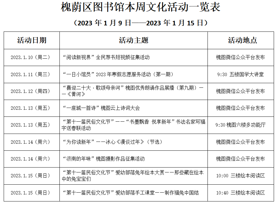 活动预告|槐图本周活动上新啦! (1月9日-1月15日)