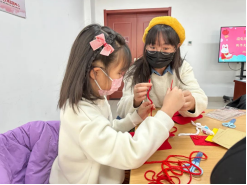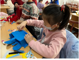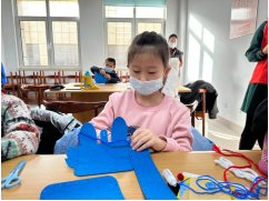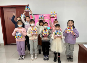 一个小时的手工时间很快就过去了,大家都完成了自己的作品,小读者们背上自己亲手制作的兔年国潮小挎包,脸上乐开了花。