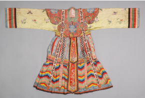 黄绫彩画花蝶纹宫衣