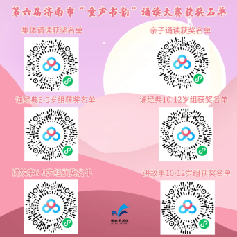 经省市专家评审,第六届济南市“童声书韵”诵读大赛获奖名单揭晓。比赛设置“亲子诵读”“集体诵读”“童声讲故事”“童声诵经典”四个类别,各类别获奖名单公布如下。