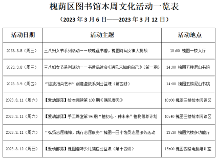 活动预告|槐图本周活动上新啦! (3月6日-3月12日)