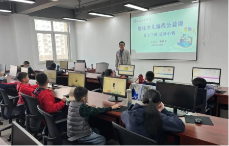 为丰富广大青少年读者的精神文化生活,培养少年儿童的科学创新精神和逻辑思维能力,2023年3月5日下午,槐荫区图书馆(槐荫区新时代文明实践中心)开展了趣味少儿编程公益课第十三讲,本期课程主题为“足球小将”。