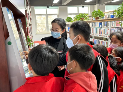随后,图书馆工作人员带领各位小馆员详细了解了智能借还设备、查询设备、消杀设备的使用方法。大家认真聆听并一一记录。小馆员们分成两组,来到各楼层借阅室,认真实践着所学知识,细心地整理每一排书架,忙的不亦乐乎。在实践中感受从“小读者”到“小馆员”的身份转变。
