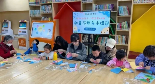为充分发挥图书馆文化主阵地作用,努力实现文化惠民、文化乐民的工作目标,丰富少年儿童的精神文化生活,2023年3月25日上午,槐荫区图书馆(槐荫区新时代文明实践中心)组织开展了爱幼部落手工课堂第95期制作“创意不织布手提包”活动,现场共有十余组家庭到场参与。