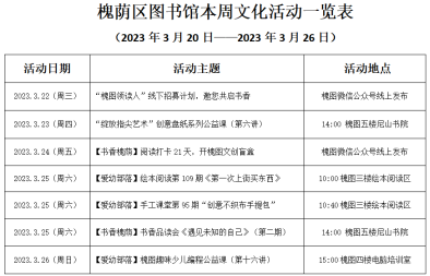 活动预告|槐图本周活动上新啦! (3月20日-3月26日)