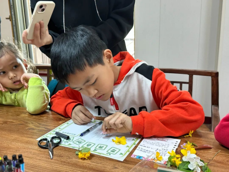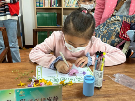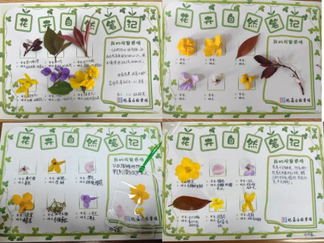 赏花之旅结束后,大家返回湖畔书屋用收集的树叶和落花制作植物观察笔记和花朵书签,将春的生机与魅力定格在笔记和书签中。