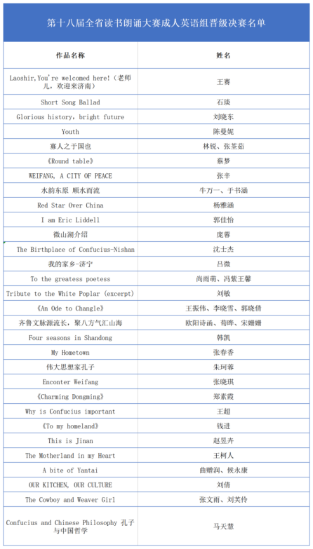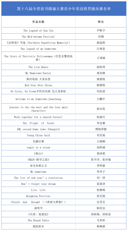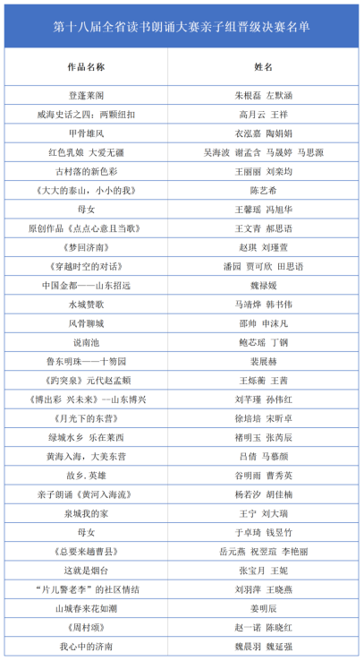 第十八届全省读书朗诵大赛亲子组、英语组晋级决赛名单