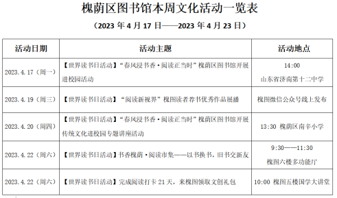 活动预告|槐荫区图书馆世界读书日活动上新啦!(4月17日-4月23日)