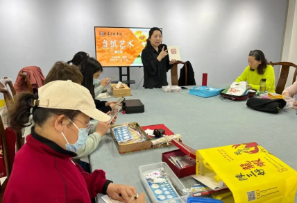 为弘扬传统文化,丰富广大读者精神文化生活,2023年4月13日下午,槐荫区图书馆(槐荫区新时代文明实践中心)在五楼尼山书院开展了“绽放指尖艺术”创意盘纸系列公益课(2023第九讲)活动。