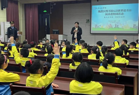 2023年4月21日下午,槐荫区图书馆(槐荫区新时代文明实践中心)来到济南市营市东街小学开展送服务进校园活动。活动中,槐荫区图书馆王老师为同学们分享了槐荫区图书馆的场馆功能以及4·23世界读书日期间开展的阅读推广活动,受到了大家的热烈欢迎。
