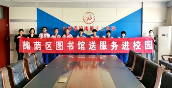 大力推动全民阅读,加快“书香槐荫”建设,2023年4月17日下午,槐荫区图书馆(槐荫区新时代文明实践中心)在世界读书日到来之际,走进山东省济南第十二中学开展“春风浸书香·阅读正当时”阅读进校园活动。本次活动中,槐荫区图书馆为同学们送去了读者证、课外读物及杂志等,这些书籍内容广泛、种类丰富,极大地满足了孩子们的课外阅读需求,受到了广大师生的热烈欢迎。