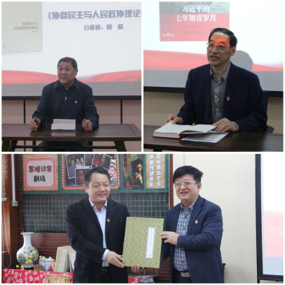 在“书香政协”读书分享会上,省委党校(山东行政学院)原二级巡视员周峰、省委党校(山东行政学院)原二级巡视员杨绍礼为参加人员推荐了《协商民主与人民政协理论研究》《习近平的七年知青岁月》两本经典书籍,以分享书中的经典段落、阅读感受的形式,引导政协委员及党员们领会初心意识和使命担当精神,汇聚思想共识。省委党校(山东行政学院)图书和文化馆馆长、教授张旭以沿黄文化资源及时代价值为主题,介绍了历代黄河变迁史,并为青年公园街道赠送图书《历代黄河变迁图考》。