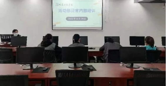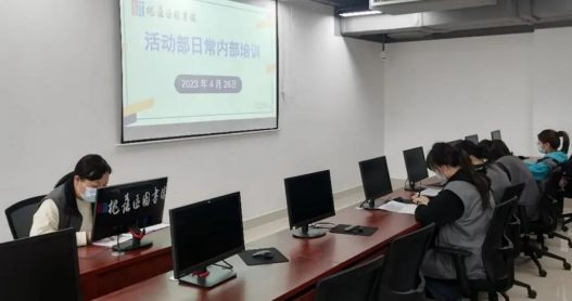 本次培训,大家对4·23世界读书日系列活动进行复盘,对于活动中发现的问题进行了交流与经验总结。随后,针对图书馆服务宣传周及“五一”期间将要开展的系列活动进行细节研究,对活动内容进行补充完善。