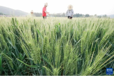 5月19日,河北省遵化市刘备寨乡安各寨村农民在麦田劳作。新华社发刘满仓摄