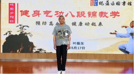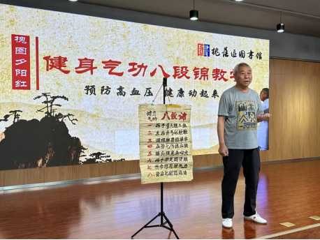 八段锦有“千年长寿操”的美誉,是我国优秀传统文化,因其简单易学、有强身祛病之功效,深受大家喜爱。5月17日是世界高血压日,槐荫区图书馆(槐荫区新时代文明实践中心)举办了槐图夕阳红系列活动——“预防高血压,健康动起来”传统健身气功八段锦教学活动,旨在增强广大读者的健身意识,倡导科学文明健康的工作和生活方式。
