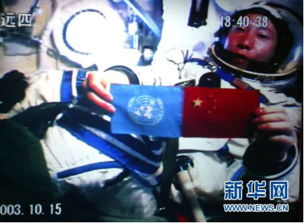 2003年10月15日,杨利伟搭乘由长征二号F火箭运载的神舟五号飞船首次进入太空,成功完成我国首次载人航天飞行
