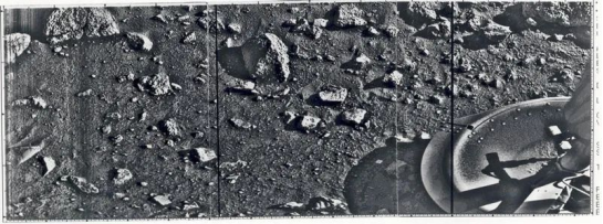 “浅鲑鱼色的浪漫天幕下,探测器的着陆腿牢牢踩在布满岩石的火星土壤上,整个世界都被这颗星球染成了幽幽的锈红色”,这是1976年“海盗1号”着陆器登陆火星后传回来的第一张火星表面的照片。这张照片具象了太空这一概念,人们仿佛置身其中,宇宙从此变得真实可触。