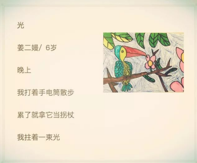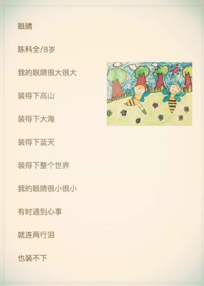 时至今日,随着社会的进步,孩子们有了更多的资源和空间发展自己,他们的童心也被更好的保护和重视。因此孩子经常给大人带来意想不到的惊喜,让我们来看看孩子们写的诗。