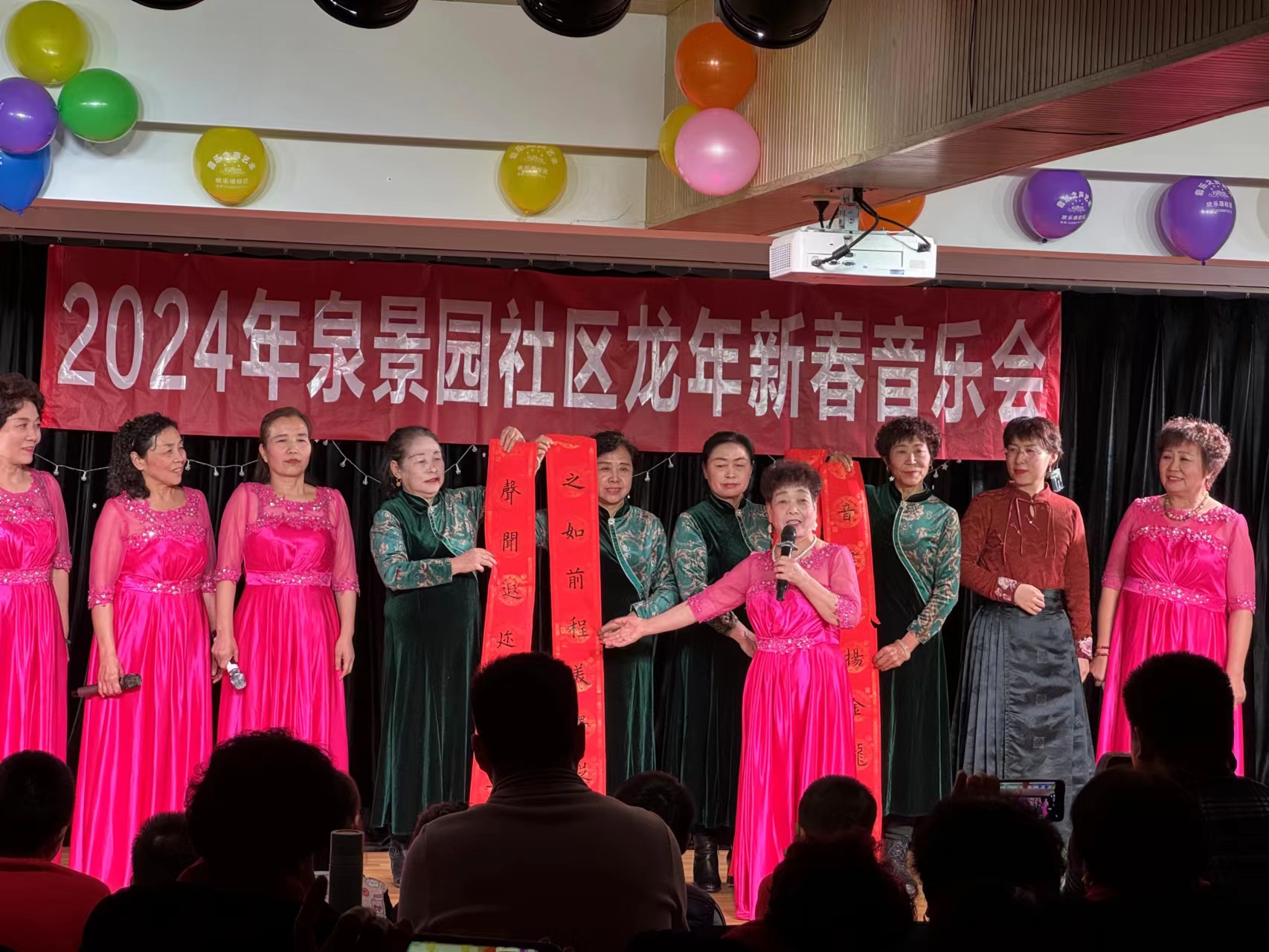 在泉景园社区,新春音乐会在器乐合奏《金蛇狂舞》中拉开序幕,唢呐齐奏《好汉歌》、葫芦丝演奏《阿瓦人民唱新歌》、音乐剧《新年好》、合唱《太阳最红毛主席最亲》、二胡演奏《赛马》、男生独唱《江山无限》等20多个居民亲自编排的节目轮番上演。热情洋溢的舞蹈,唯美动听的歌声,展现了居民朝气蓬勃、向上向善的精神风貌。整场联欢会精彩纷呈,赢得观众连连点赞和阵阵掌声。