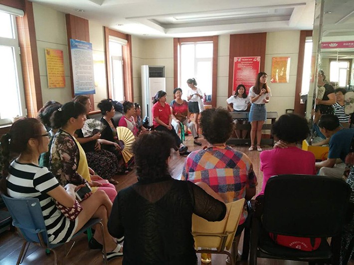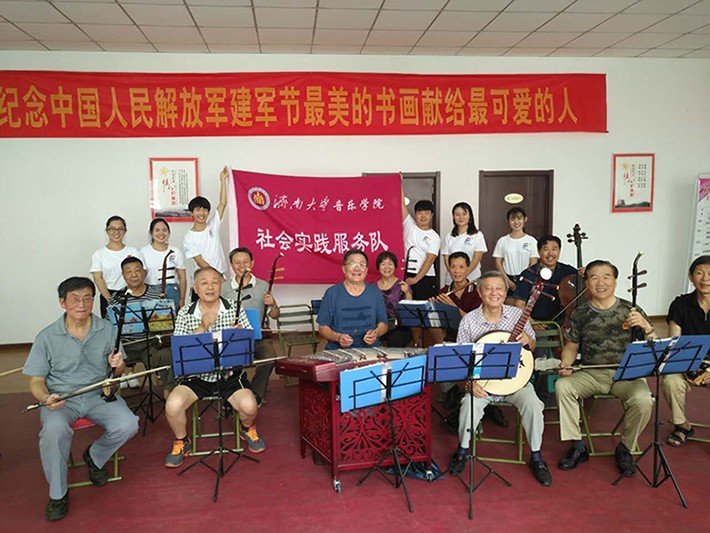 7月17日,槐荫区文化馆与济南大学大学生实践基地开展共建活动—大学生文化志愿者艺术送课进社区开课仪式在槐荫区文化馆举行。本次共建活动与槐荫区文化志愿工作相结合,使我区基层文化群众队伍建设工作迈向新台阶,进一步完善我区基层群众队伍建设服务体系,为辖区居民提供优质的公益性文化服务。与济南大学优秀的40余名大学生进行下基层辅导,面向道德街、段北、美里湖等8个办事处下辖社区25支群众文化队伍进行为期一周的送课活动。,扩大了今年的辅导队伍覆盖面,课程也由单一的声乐、舞蹈扩大到今年的合唱、艺术讲座、大提琴等艺术课程。