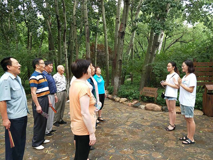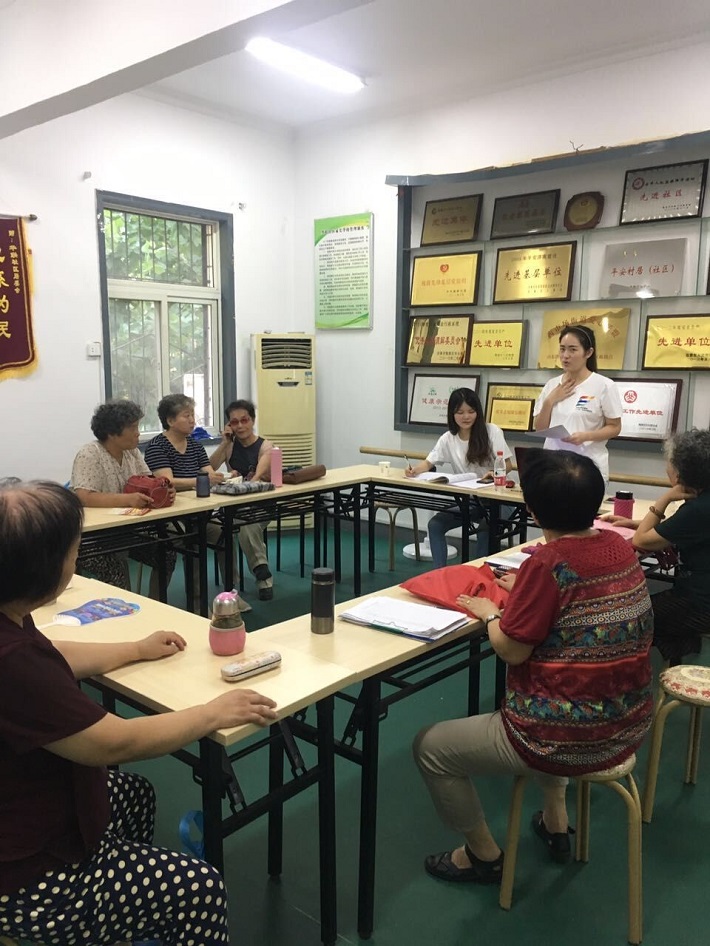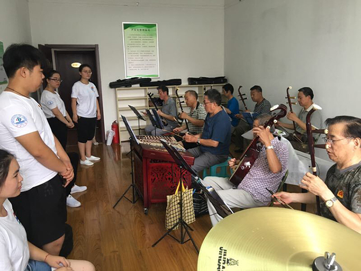 (7月17日,槐荫区文化馆与济南大学大学生实践基地开展共建活动—大学生文化志愿者艺术送课进社区开课仪式在槐荫区文化馆举行。图为文化志愿者在振兴街)