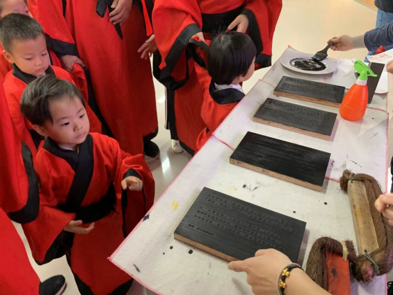 最后,孩子们纷纷上前体验非遗项目雕版印刷。