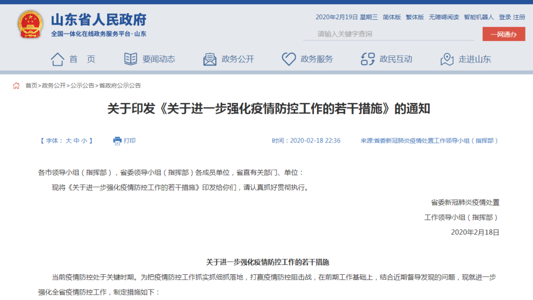 六、严格落实机关企事业单位主体责任。机关、企事业单位要对所有在职在岗人员实施严格的健康管理措施,返岗人员一律建立“花名册”,外省来鲁返鲁人员上岗前一律实施居家隔离观察,观察期限为自抵鲁之日起至少14天;实行体温晨午检制度,发现异常立即安排就医;上班职工和从业人员一律佩戴口罩上岗;暂停或减少例会等内部人群聚集活动。