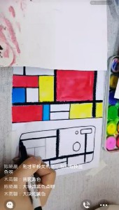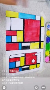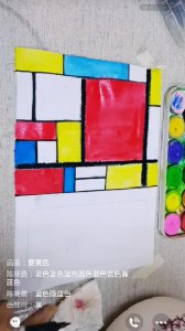 艺术没有终点,学习也没有止境。在对蒙德里安进行简单了解后,雅婷老师运用蒙德里安画面中的红黄蓝三原色带领小读者们进行绘画创作。