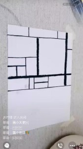 雅婷老师在教学示范中,先画出了自己心中的几何世界,随后利用自己心中的几何世界向生活中进行延伸画出了手机壳和椅子。