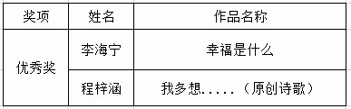在全省决赛中,我区选手程梓涵、李海宁两位小朋友获得了山东省读书朗诵大赛优秀奖。