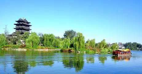 大明湖,山东省济南市区湖泊、济南三大历史名胜之一。位于济南市历下区旧城区北部,是由济南众多泉水汇流而成,湖水经泺水河注入小清河。湖水面积46公顷,水深平均2~3米。大明湖历史悠久,纪念古人政绩、行踪的建筑以及自然景观很多,诸如历下亭、铁公祠、小沧浪、北极阁、汇波楼、南丰祠、遐园、稼轩祠等,引得历代文人前来凭吊、吟咏。唐代以后的历代诗人,都留下了著名的诗篇。