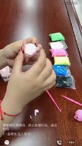 拿出准备好的彩色黏土,将它揉成一个椭圆形。捏好小猪的鼻子、耳朵和四肢。
