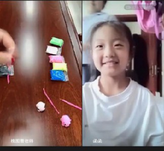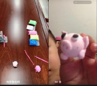曹老师在课程进行中和小读者们进行了连线,小读者们也分享了自己制作的“粉色小猪”。