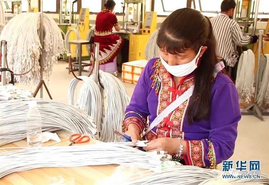 4月10日,工人在云南省怒江傈僳族自治州泸水市大兴地镇维拉坝珠海社区数据线加工扶贫车间工作。 新华社记者 吴寒 摄