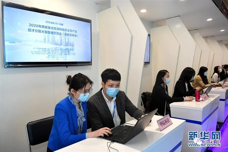 4月14日,用人单位在西安高新区丝路人才大市场集中进行网络招聘。新华社记者 刘潇 摄