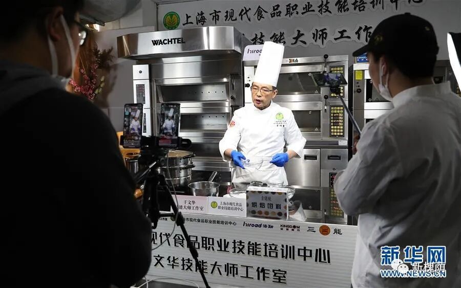 3月25日,在上海市现代食品职业技能培训中心,国家西式面点高级技师宋伟泉在网络直播课程上介绍青团面皮的制作方法。 新华社记者 方喆 摄