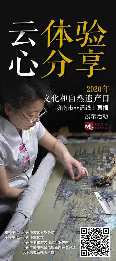 2020年6月13日是我国第四个“文化和自然遗产日”。为弘扬中华优秀传统文化,传承发展好济南市非物质文化遗产,增强广大市民对非遗的认同感、获得感与参与度,结合济南市防疫现状,由济南市文化和旅游局主办,济南市文化馆、济南市非物质文化遗产保护中心、济南广播电视台电视新闻综合频道、天下泉城新闻客户端承办的“云体验 心分享”非遗线上直播展示活动于12日上午在济南市文化馆一楼大厅正式举行。