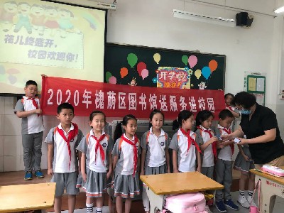 2020年6月2日上午,槐荫区图书馆在营东小学低年级开学第一天,来到该校西校区,开展“送书、送借书证”走进校园读书活动,为一到三年级的孩子们送去关怀和礼物。