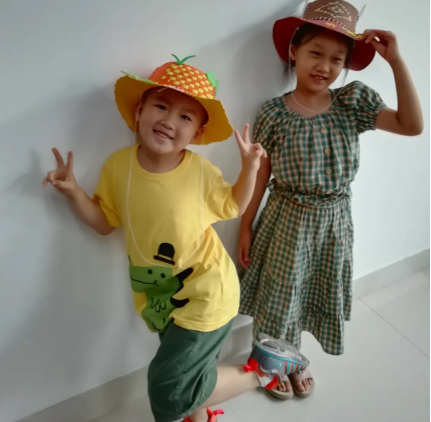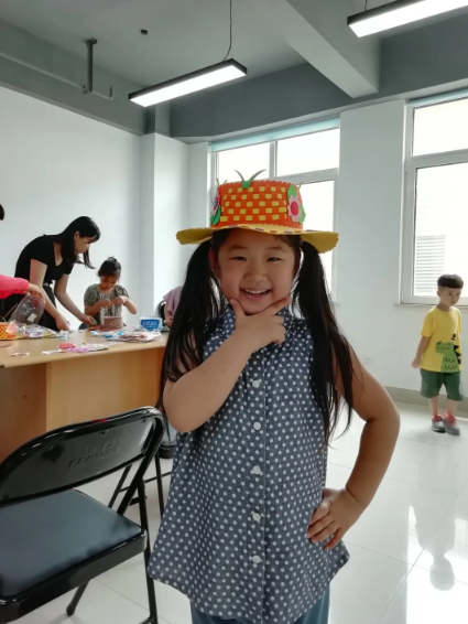 一个小时的手工时间很快就过去了,每位参加活动的小读者都完成了自己的作品,戴上亲自设计的太阳帽,甭提多开心啦,快瞧,现场大家就开启了一场太阳帽设计大奖的走秀环节。
